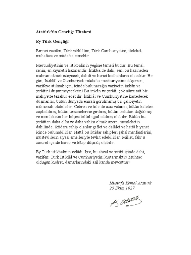 ataturk un genclige hitabesi turkce